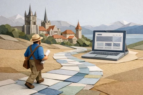 Image paper craft: un artisan en chemin vers la création de son site internet professionnel à Lausanne. Guide complet 2026.