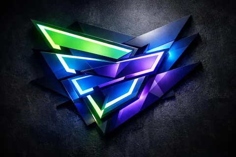 Création d'enseignes lumineuses sur mesure: formes géométriques abstraites et dynamiques superposées, lumières néon vives.